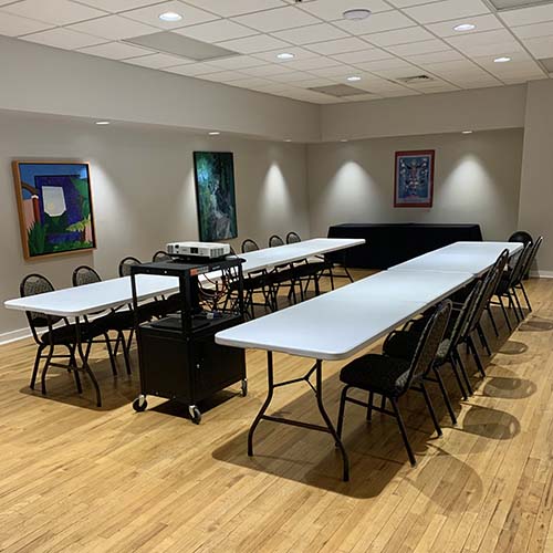 A comfortable space great for small gatherings, meetings, and birthday parties.